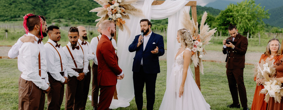 If you desire a wedding that goes beyond a mere formal celebration, Château Artwine provides an immersive experience in an enchanting location. Instead of a standard city banquet hall, enjoy a winery setting with exquisite local cuisine. Guests can fully experience the venue through vineyard walks, wine tastings, and delightful Kakhetian cheese. Plus, there is no need to travel to another hotel, as everything is conveniently located.